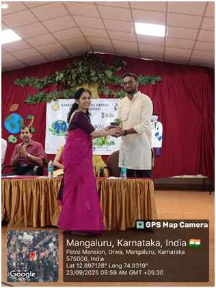 Dignitaries on the diasDr.SwapnaBhat, Principal and Dr.Ajith Kamath M., Vice Principal, KAMC, Mangalore. Dr.SwapnaBhat, Principal, KAMC, Mangalore delivered the Presidential Address enlightening on the theme of 10th National Ayurveda Day, “Ayurveda for People and Planet” and emphasized the role of Ayurveda in preventive healthcare, lifestyle management, and its growing global acceptance. Dr.Parikshitha Navada K S, Associate professor, Dept of Rasashastra&BhaishajyaKalpana, Nodal officer for 10th National Ayurveda Day welcomed the gathering, Dr.Navaneetha, Assistant professor, Dept of Swasthavritta delivered the Vote of thanks and Master of Ceremony was done by Dr.Santhoshini, Assistant professor, Dept of Kayachikitsa, KAMC, Mangalore.
