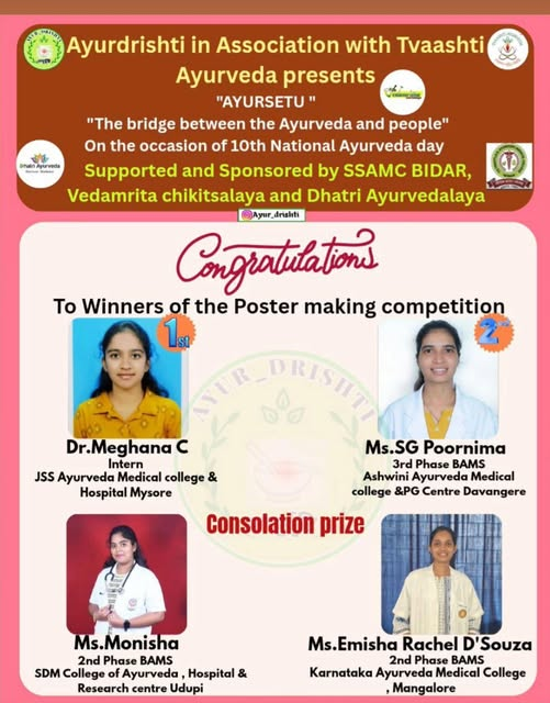 Congratulations to Anvith B. and Sanjana, Final year BAMS Students, KAMC,Manglore for winning Second place in National level Poster presentation competition organised by Department of Manasa Roga at Alva’s Ayurveda Medical College, Moodubidire.