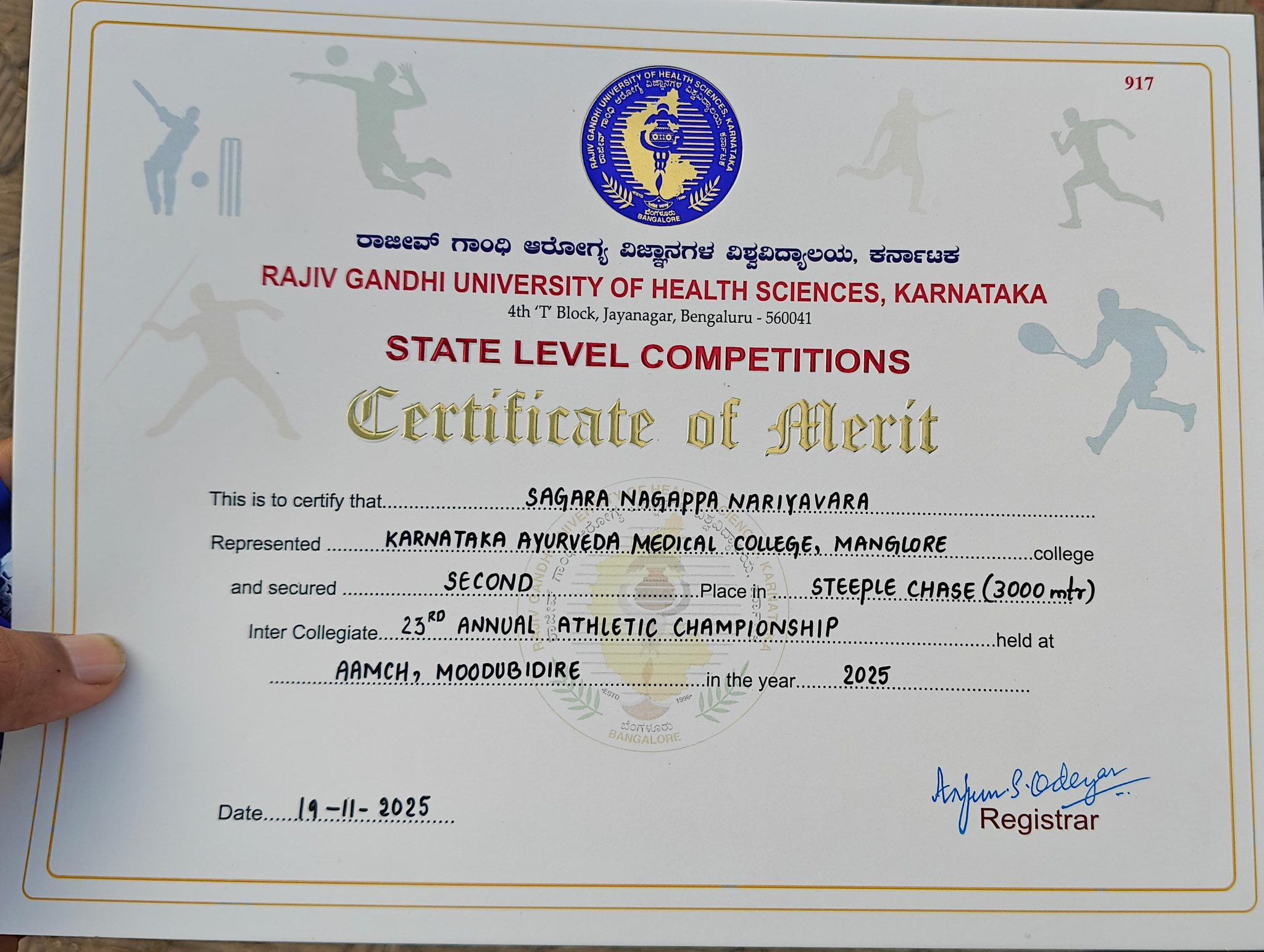 Results of RGUHS State Level Athletic Competition..