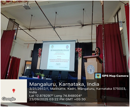 Dr Sukanya, Asst prof, Dept of Swastavrutta and Yoga invited as a resource person at Sri Ramakrishna college on the theme “Sustainability and diversity of nutrients to prevent lifestyle disorders “ .the session is scheduled on the day of National service scheme installation ceremony at this prestigious institution.the programme was organised by IQAC and NSS on 23/9/2025.