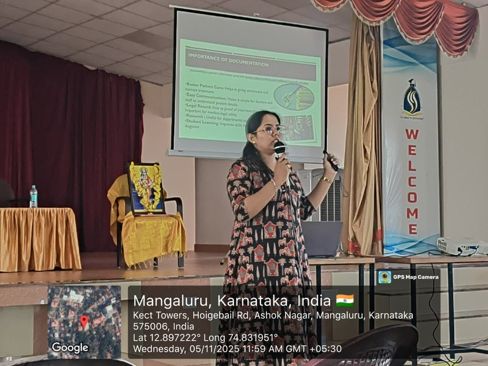 The second session was conducted by Dr. Krithi N. K, who focused on documentation, record maintenance, and clinical case presentation skills, stressing their significance in cultivating professionalism and accountability during internship training.