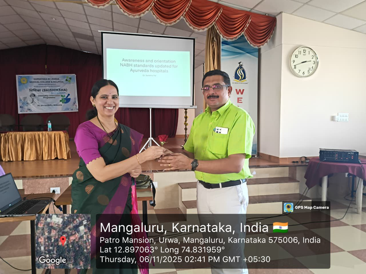 The afternoon session was delivered by Dr. Surekha Pai, Medical Superintendent, Professor and Head, Department of Kayachikitsa, Alva’s Ayurveda Medical College, Moodbidri, on the topic “Awareness and Orientation of NABH Standards Updated for Ayurveda Hospitals.” She elaborated on the principles of quality assurance, patient safety, and the necessity of adhering to NABH protocols for institutional excellence.