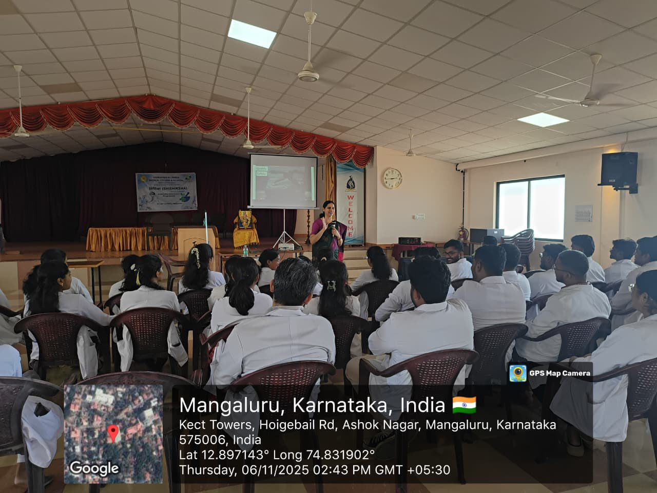 The second session was conducted by Dr. Vani, Professor, Department of Prasuti Tantra and Stri Roga, who focused on Labour Theatre Etiquettes. She emphasized the importance of discipline, teamwork, and preparedness in maintaining efficiency and patient safety in clinical environments.