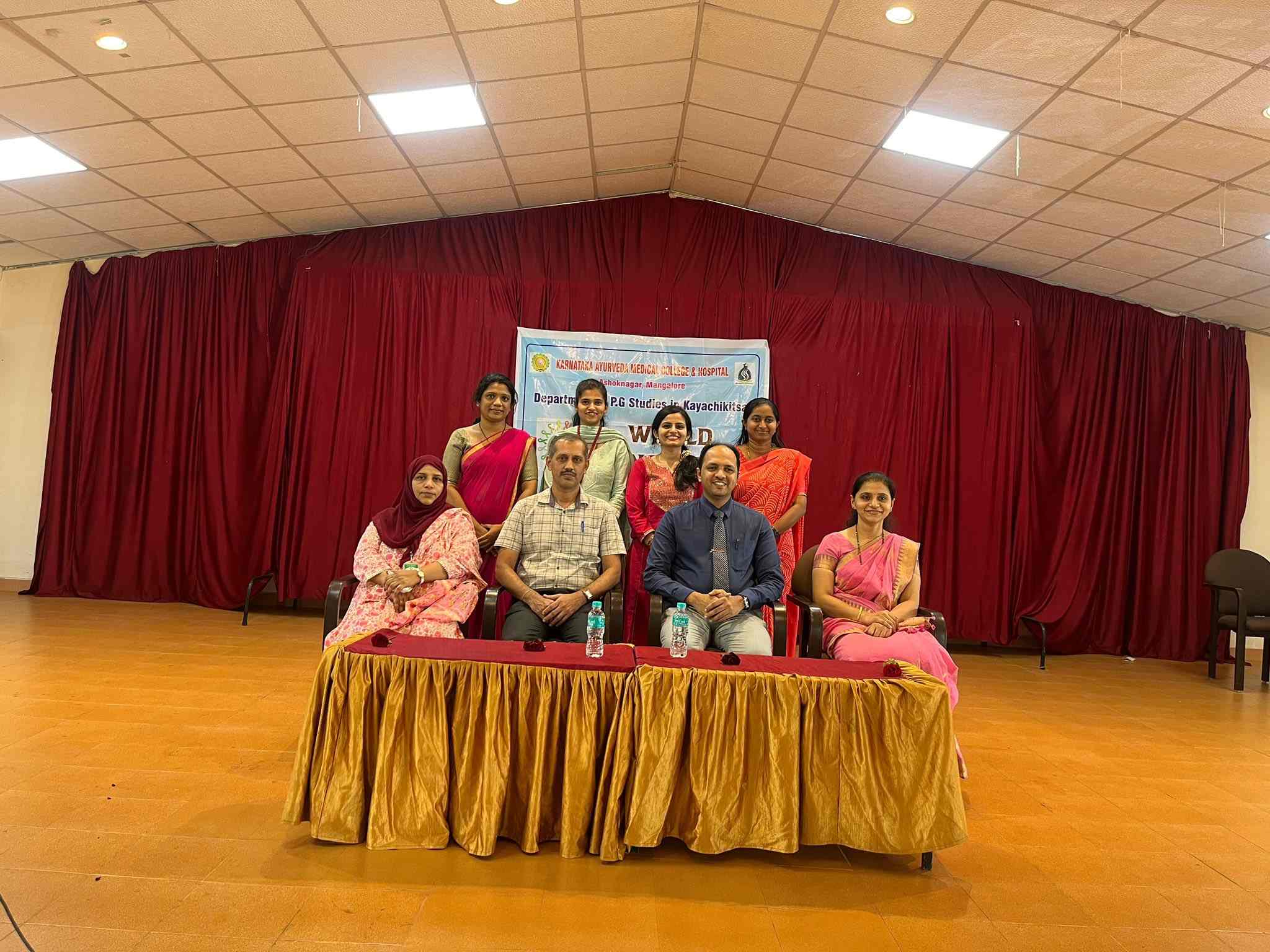 The welcome address was given by Dr. Sahana M, Associate Professor, Department of Kayachikitsa, KAMC. The programme was hosted by Dr. Anitha S, Associate Professor, KAMC. The vote of thanks was delivered by Dr. Savitha P, Assistant Professor, Department of Kayachikitsa, KAMC.