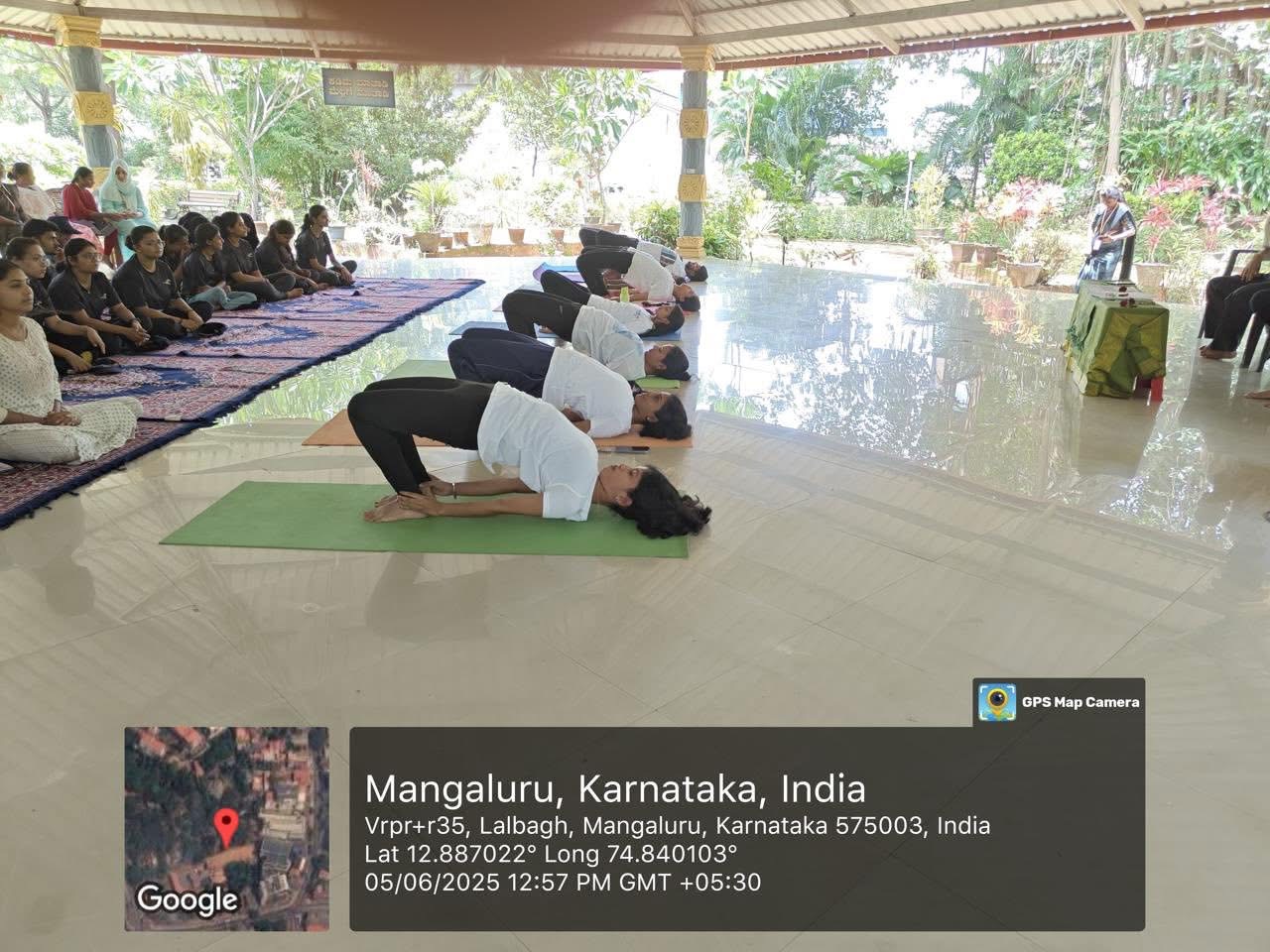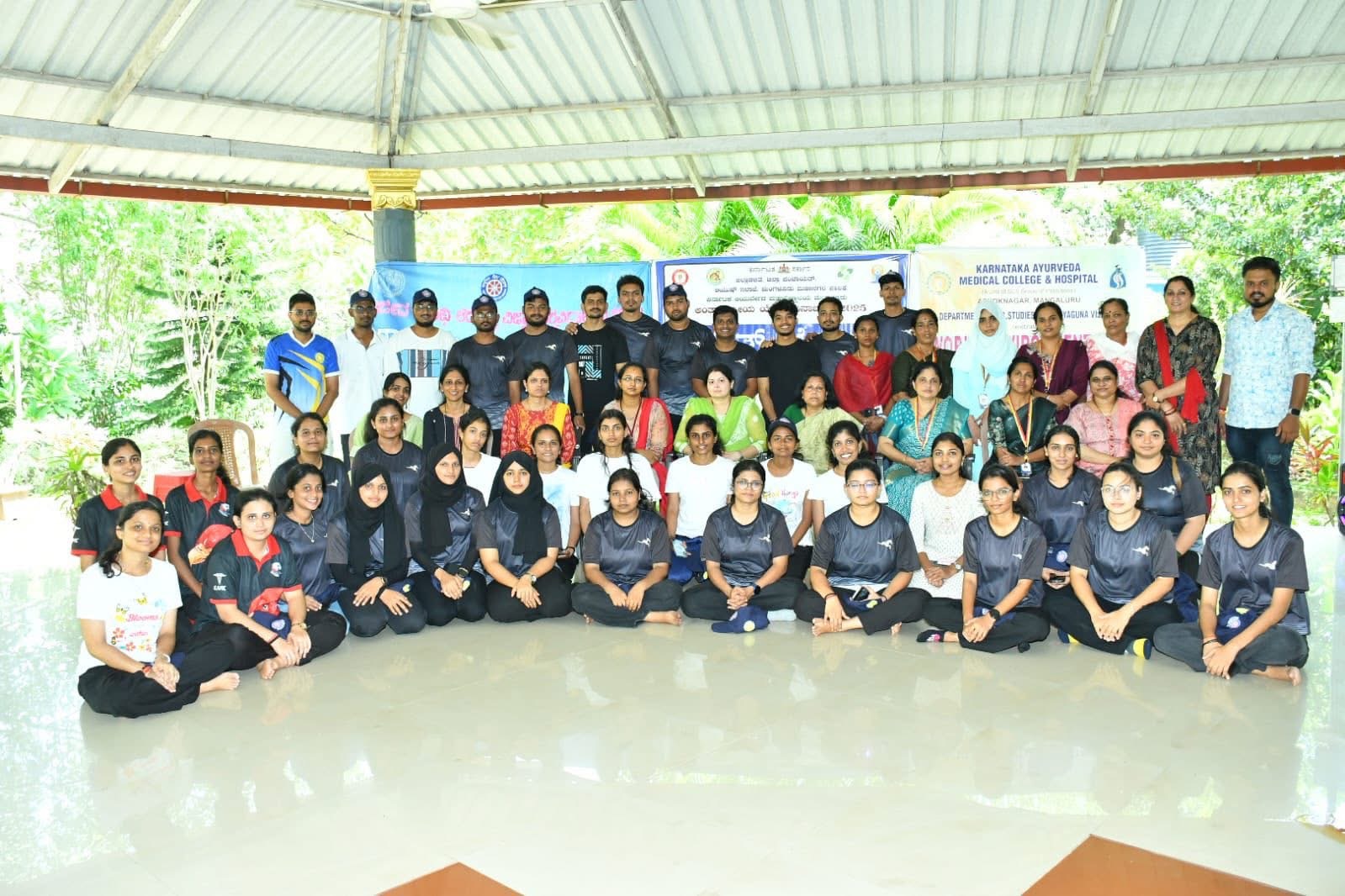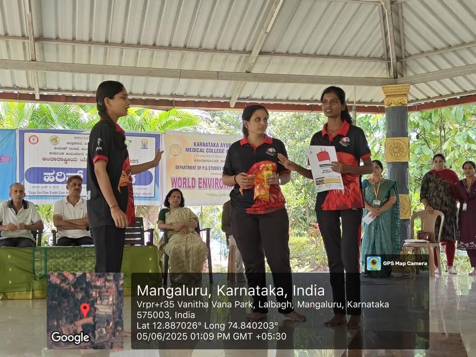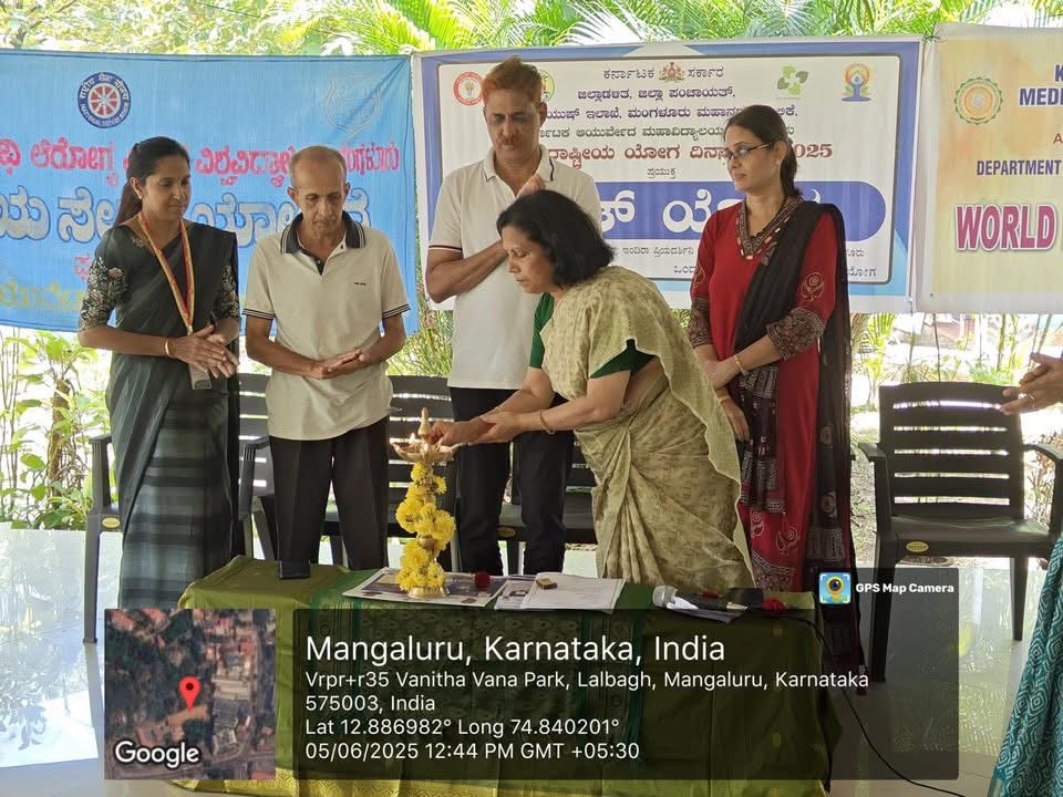 On the occasion of World Environment day and 11th International Yoga day “Harith Yoga“ programme was organised by AYUSH department in Association with Karnataka Ayurveda Medical College, Ashok nagar, Mangaluru ( Dept of PG studies in Dravyaguna Vijnana, Dept of Swasthavritta and NSS Unit) on 05-06-2025 at Indira Priyadarshini Park, Hathill, Mangalore